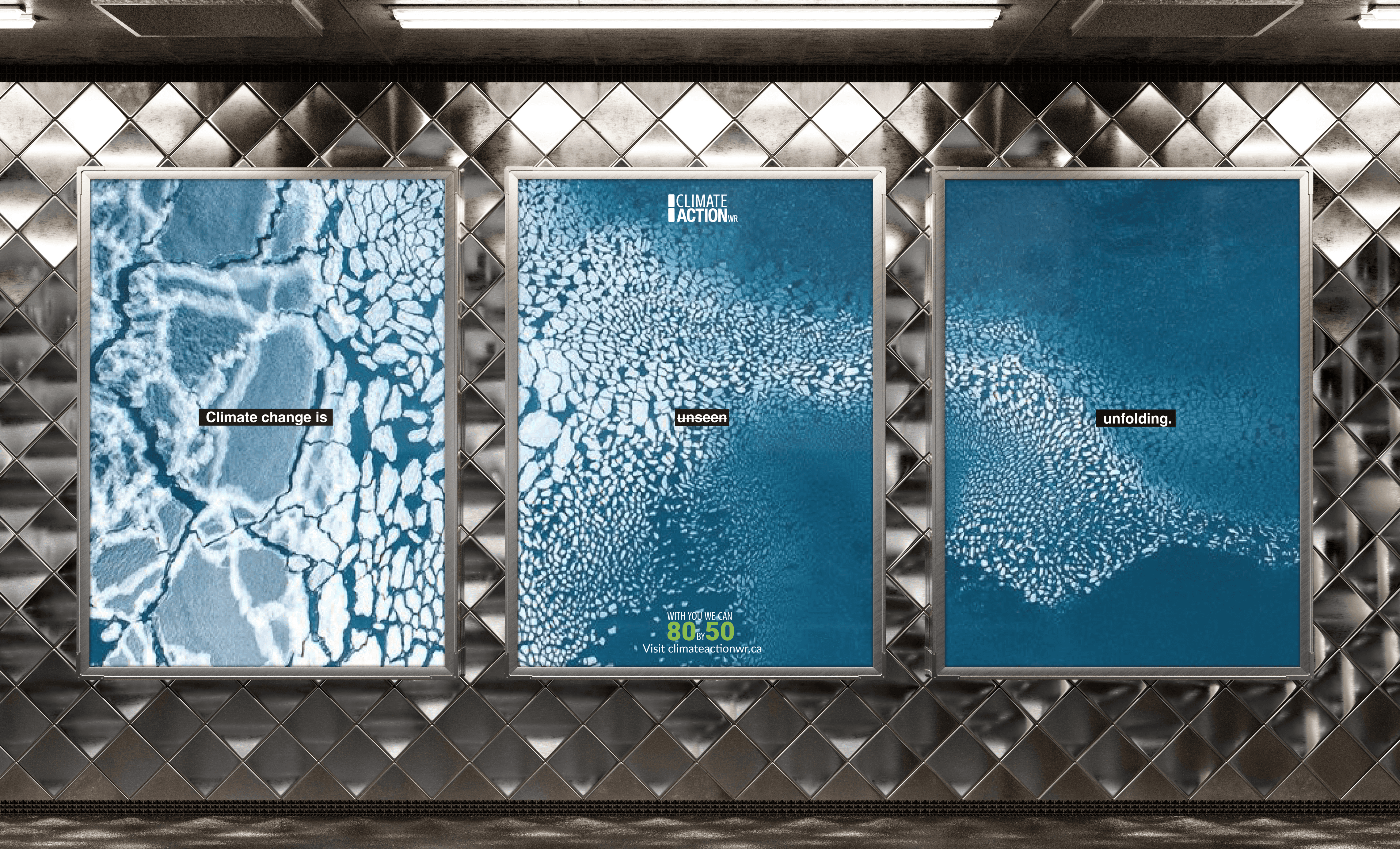 The idea is to show that climate change isn’t something far away; it’s already happening around us, right now. The posters use strong visuals to make people stop and realize